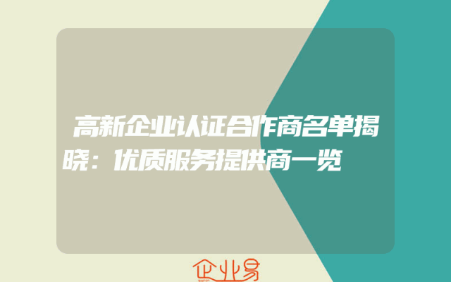 - 高新企业认证合作商名单揭晓:优质服务提供商一览