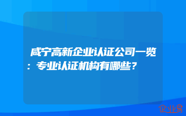 - 咸宁高新企业认证公司一览:专业认证机构有哪些?