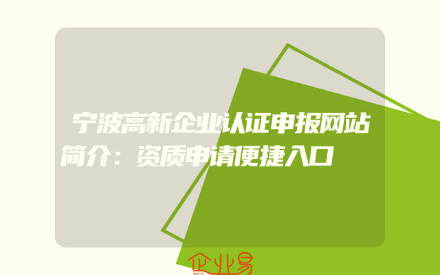 - 宁波高新企业认证申报网站简介:资质申请便捷入口