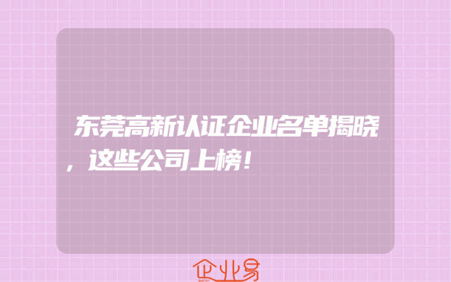 - 东莞高新认证企业名单揭晓,这些公司上榜!