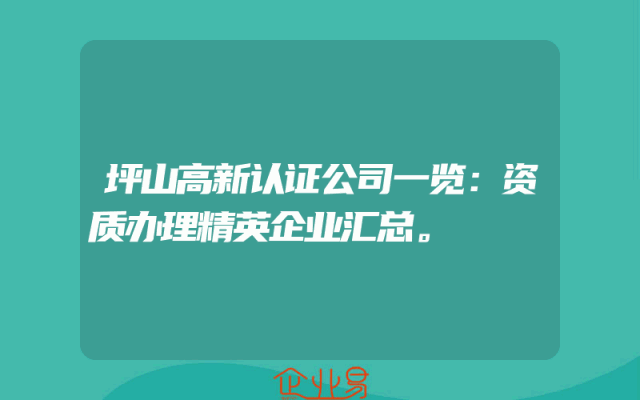 - 坪山高新认证公司一览:资质办理精英企业汇总。