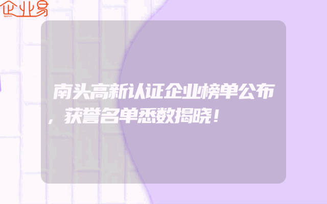 - 南头高新认证企业榜单公布,获誉名单悉数揭晓!