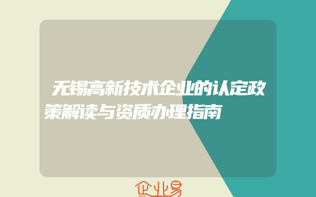 - 无锡高新技术企业的认定政策解读与资质办理指南