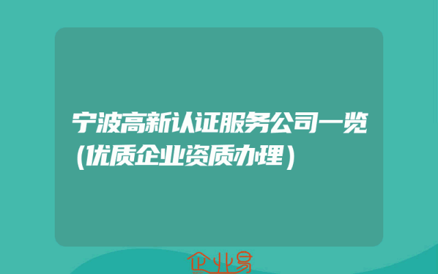 - 宁波高新认证服务公司一览(优质企业资质办理)