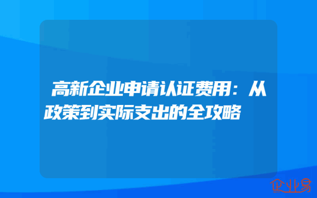 - 高新企业申请认证费用:从政策到实际支出的全攻略