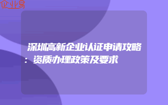 - 深圳高新企业认证申请攻略:资质办理政策及要求