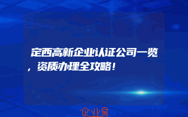- 定西高新企业认证公司一览,资质办理全攻略!