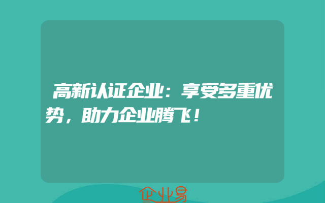 - 高新认证企业:享受多重优势,助力企业腾飞!