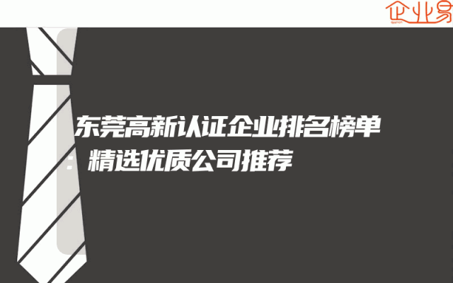 - 东莞高新认证企业排名榜单:精选优质公司推荐