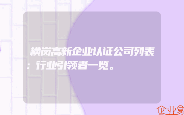 - 横岗高新企业认证公司列表:行业引领者一览。