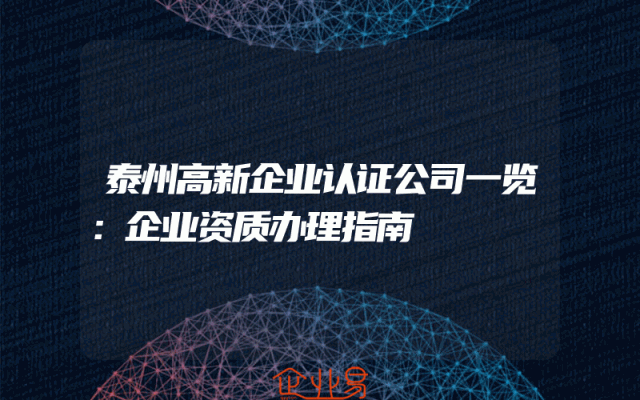 - 泰州高新企业认证公司一览:企业资质办理指南