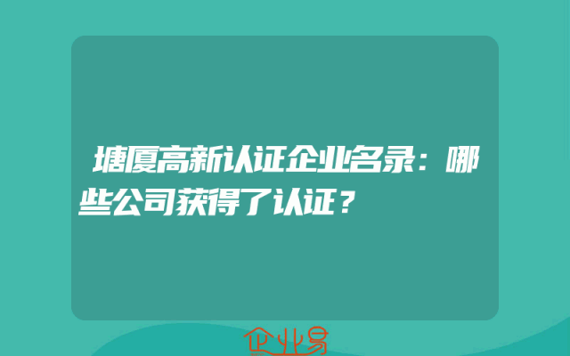 - 塘厦高新认证企业名录:哪些公司获得了认证?