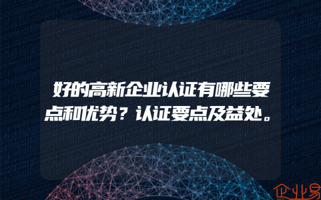 - 好的高新企业认证有哪些要点和优势?认证要点及益处。