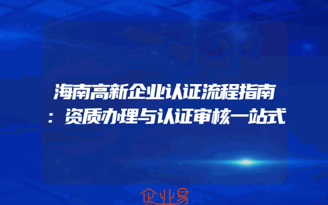 - 海南高新企业认证流程指南:资质办理与认证审核一站式