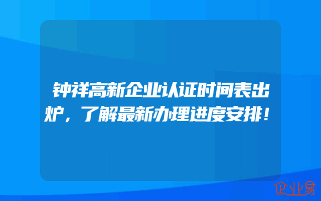 - 钟祥高新企业认证时间表出炉,了解最新办理进度安排!