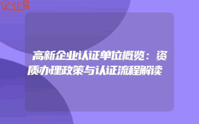 - 高新企业认证单位概览:资质办理政策与认证流程解读