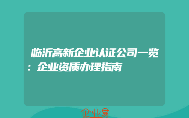 - 临沂高新企业认证公司一览:企业资质办理指南