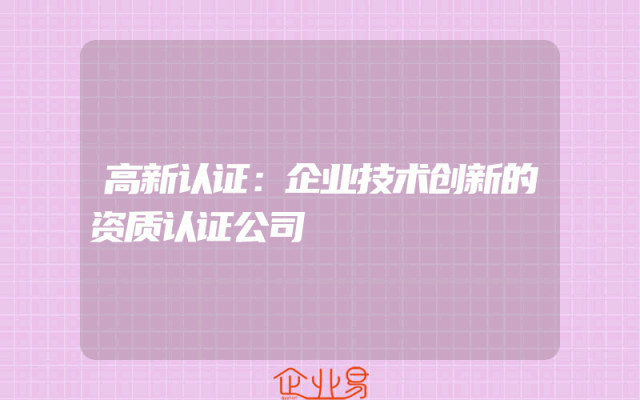 - 高新认证:企业技术创新的资质认证公司解析一、高新认证的概念及其重要性高新认证,全称为高新技术企业认定,是为了扶持和鼓励企业在技术创新方面取得显著成果而设立的一种资质认证。这种认证不仅代表了企业的技术实力和市场竞争力,更是企业参与国内外市场竞