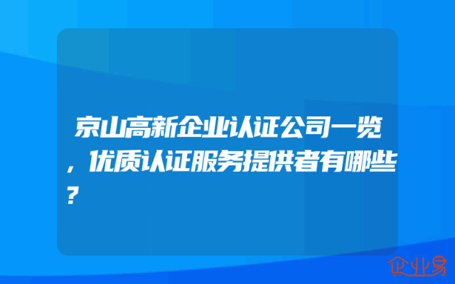 - 京山高新企业认证公司一览,优质认证服务提供者有哪些?