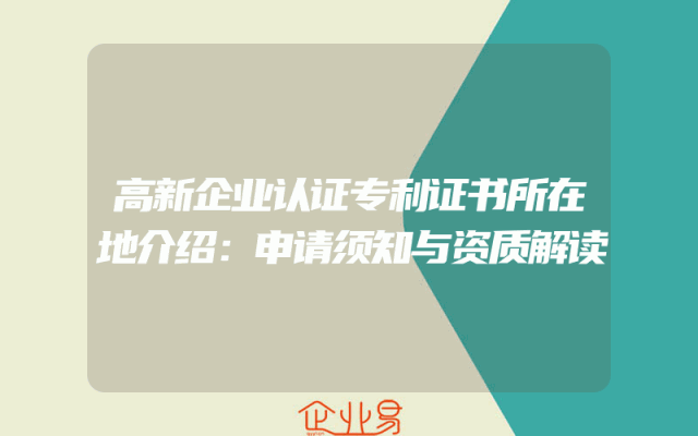- 高新企业认证专利证书所在地介绍:申请须知与资质解读