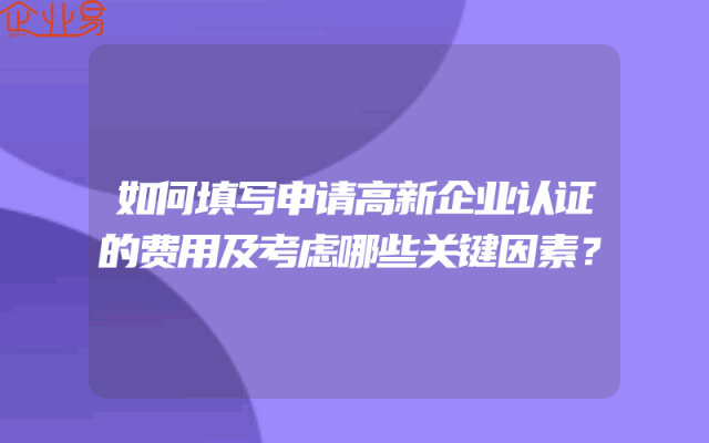 - 如何填写申请高新企业认证的费用及考虑哪些关键因素?