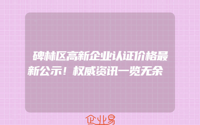 - 碑林区高新企业认证价格最新公示!权威资讯一览无余
