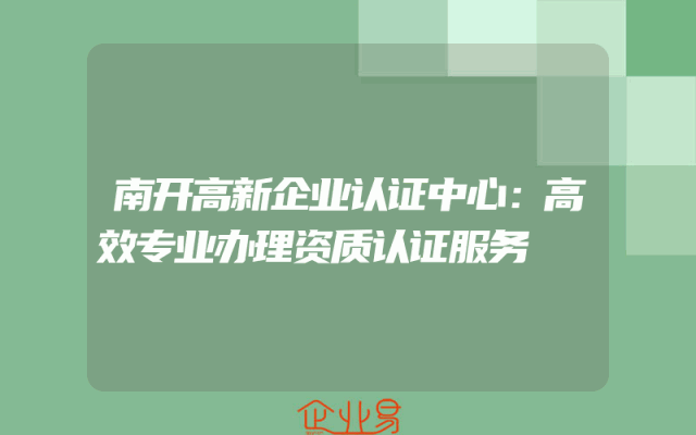 - 南开高新企业认证中心:高效专业办理资质认证服务