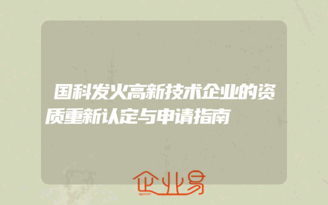 - 国科发火高新技术企业的资质重新认定与申请指南