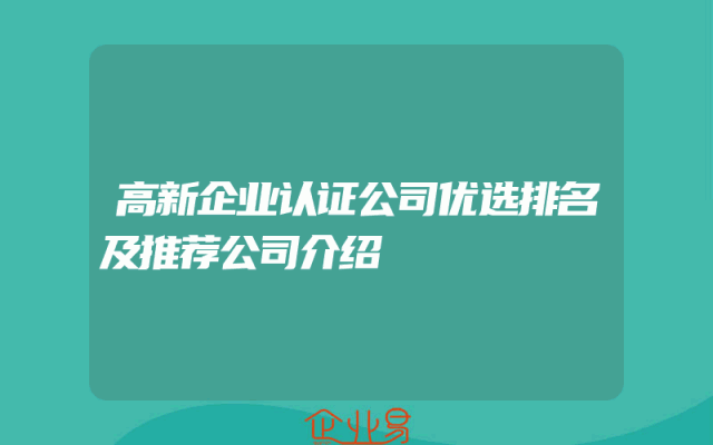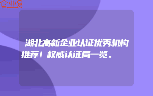 - 湖北高新企业认证优秀机构推荐!权威认证局一览。