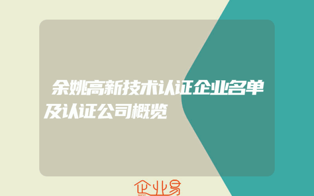 - 余姚高新技术认证企业名单及认证公司概览一、余姚高新技术认证企业名单余姚市作为科技创新的热门地区,众多企业积极投身于高新技术研发与应用。最新公布的余姚高新技术认证企业名单中,涵盖了一系列在不同领域内表现突出的企业。这些企业涉及智能制造