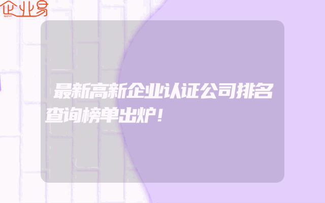 - 最新高新企业认证公司排名查询榜单出炉!一、高新企业认证的重要性随着科技的不断进步和创新,高新企业认证成为了衡量企业技术实力和创新能力的标准之一。高新企业认证不仅有助于企业提升品牌形象,增强市场竞争力,还能享受政府提供的各项优惠政策,促进企业