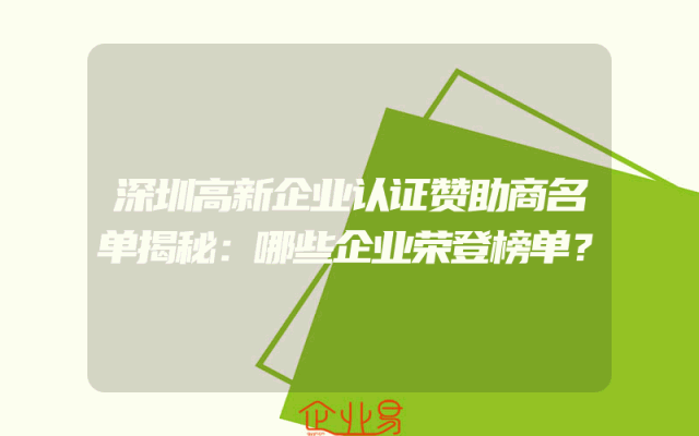 - 深圳高新企业认证赞助商名单揭秘:哪些企业荣登榜单?