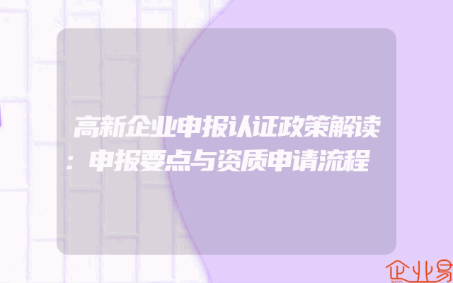 - 高新企业申报认证政策解读:申报要点与资质申请流程