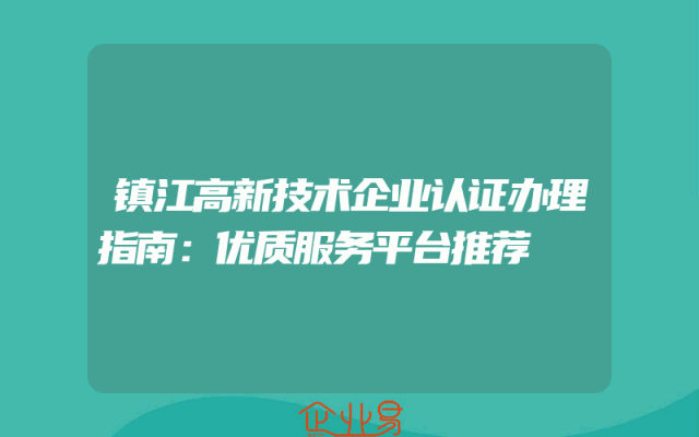 - 镇江高新技术企业认证办理指南:优质服务平台推荐