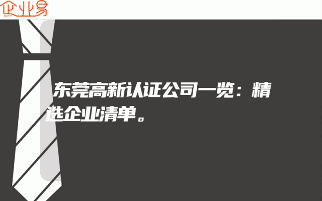 - 东莞高新认证公司一览:精选企业清单。