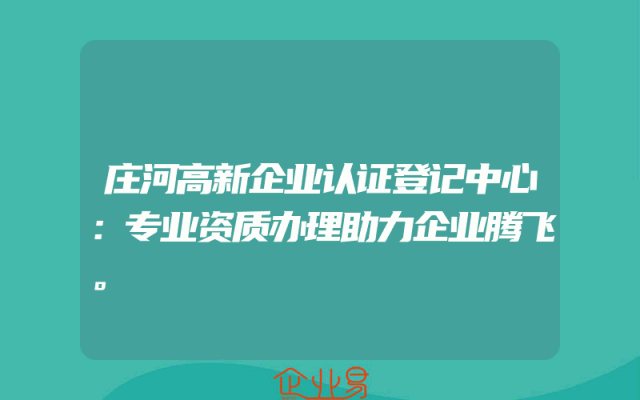 - 庄河高新企业认证登记中心:专业资质办理助力企业腾飞。