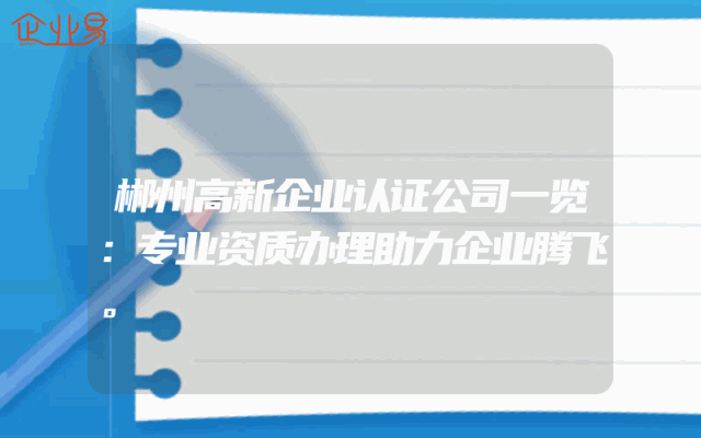 - 郴州高新企业认证公司一览:专业资质办理助力企业腾飞。