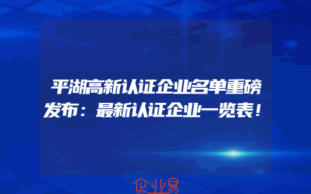 - 平湖高新认证企业名单重磅发布:最新认证企业一览表!