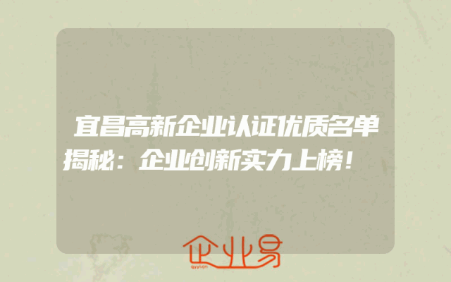 - 宜昌高新企业认证优质名单揭秘:企业创新实力上榜!
