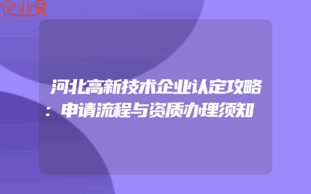 - 河北高新技术企业认定攻略:申请流程与资质办理须知