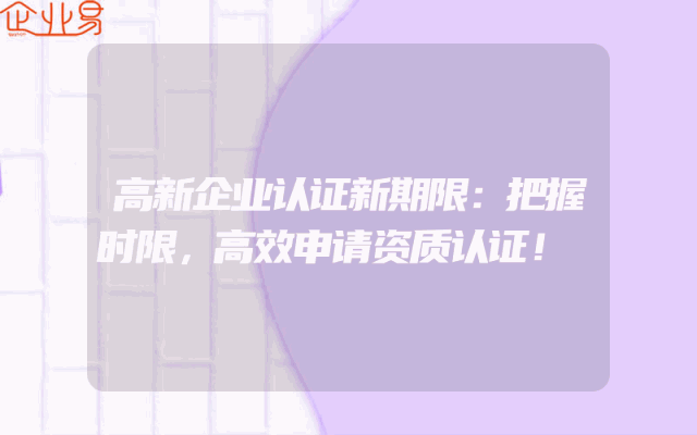 - 高新企业认证新期限:把握时限,高效申请资质认证!