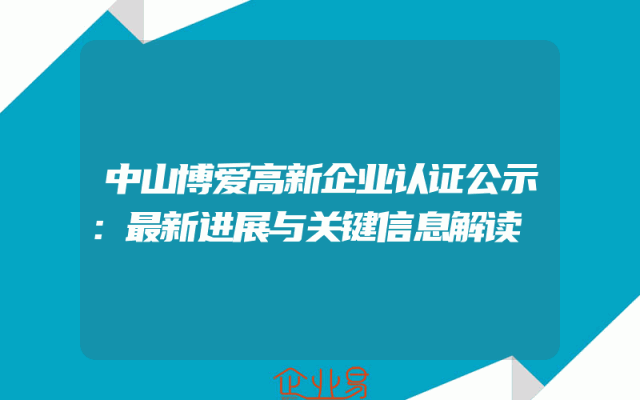 - 中山博爱高新企业认证公示:最新进展与关键信息解读