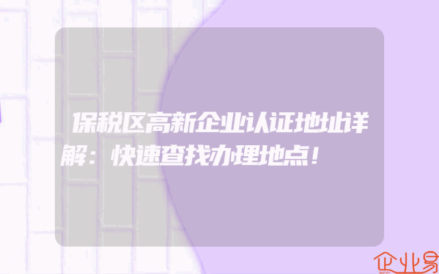 - 保税区高新企业认证地址详解:快速查找办理地点!