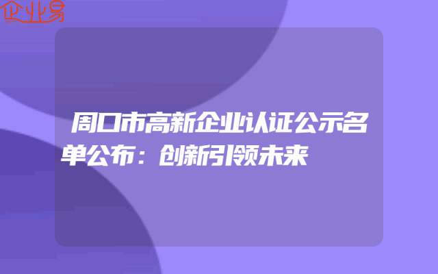 - 周口市高新企业认证公示名单公布:创新引领未来