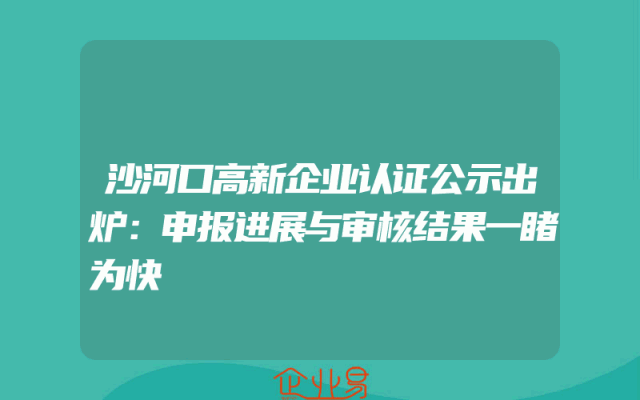 - 沙河口高新企业认证公示出炉:申报进展与审核结果一睹为快