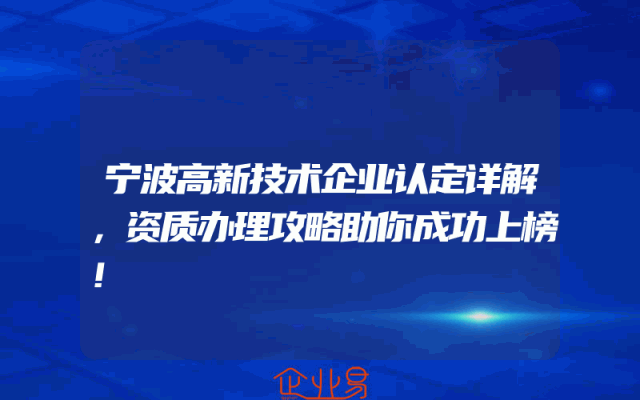 - 宁波高新技术企业认定详解,资质办理攻略助你成功上榜!