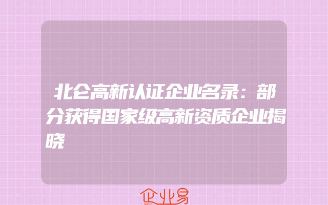 - 北仑高新认证企业名录:部分获得国家级高新资质企业揭晓