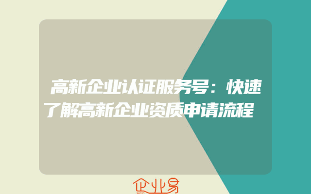 - 高新企业认证服务号:快速了解高新企业资质申请流程