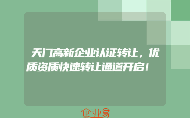 - 天门高新企业认证转让,优质资质快速转让通道开启!