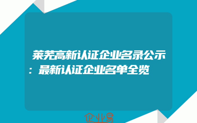 - 莱芜高新认证企业名录公示:最新认证企业名单全览
